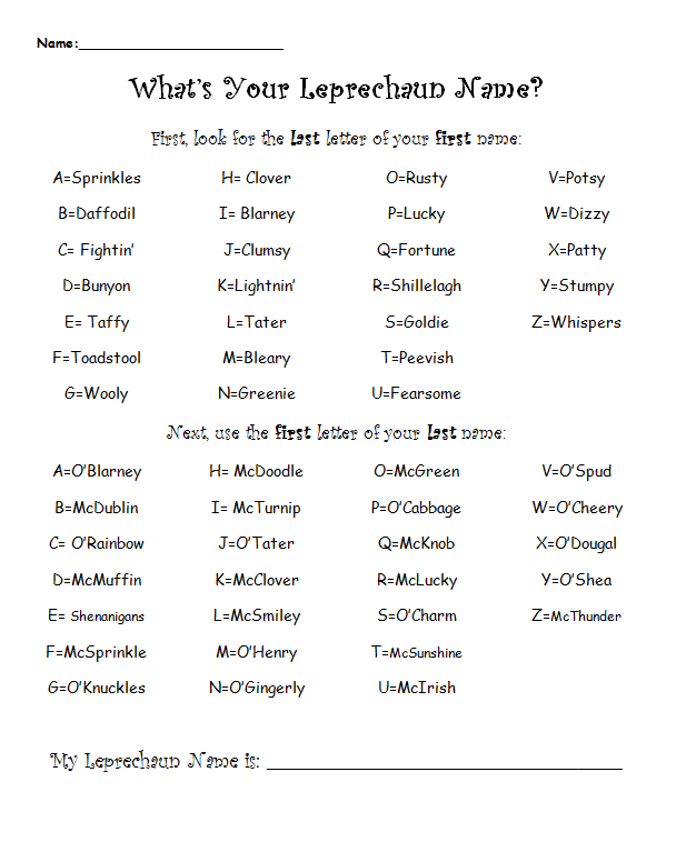 What's your leprechaun name? Maybe share it with your child in celebration of all things small, green and Irish. Mine according to the below is Sprinkles McDoodle.